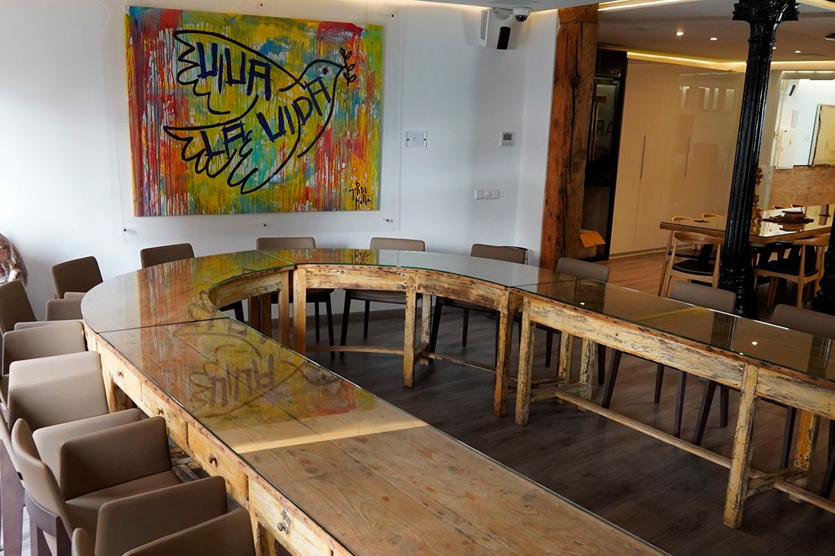 Sala para eventos situada justo encima de la entrada de Ferretería Restaurante. Se trata de un espacio equipado con cocina, mesa de reuniones, equipo multimedia, hilo musical… donde se pueden realizar un sinfín de eventos, desde cumpleaños hasta presentaciones de productos o reuniones de empresa.